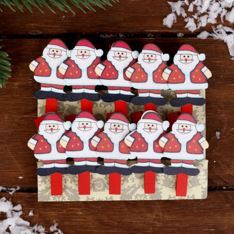 Набор прищепок декоративных "Дед Мороз" 10шт