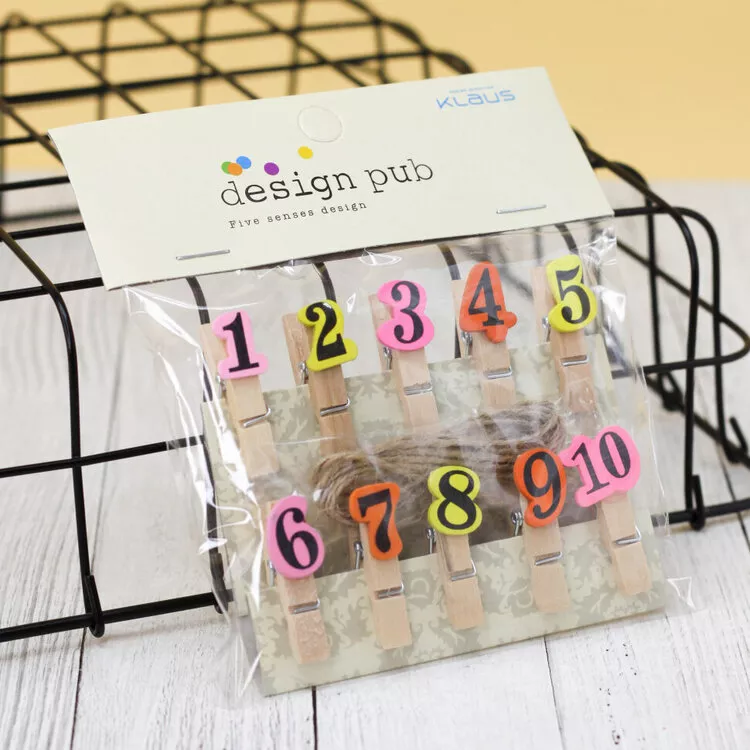 Набор прищепок декоративных "Numbers" с веревкой 10шт., 3,8х1,5см