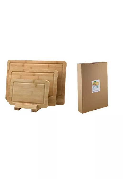 Набор разделочных досок 3шт. 38х27см, 31х21см, 23х15см бамбук, прямоуг., на подставке