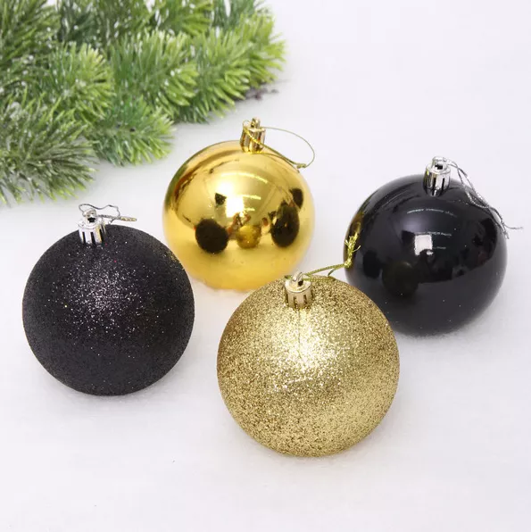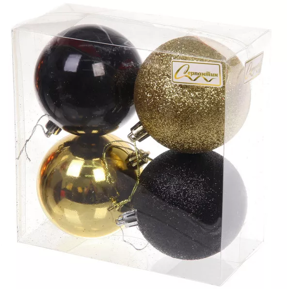 Набор шаров "Микс фактур" 4шт, 8см, цв.черный/золото