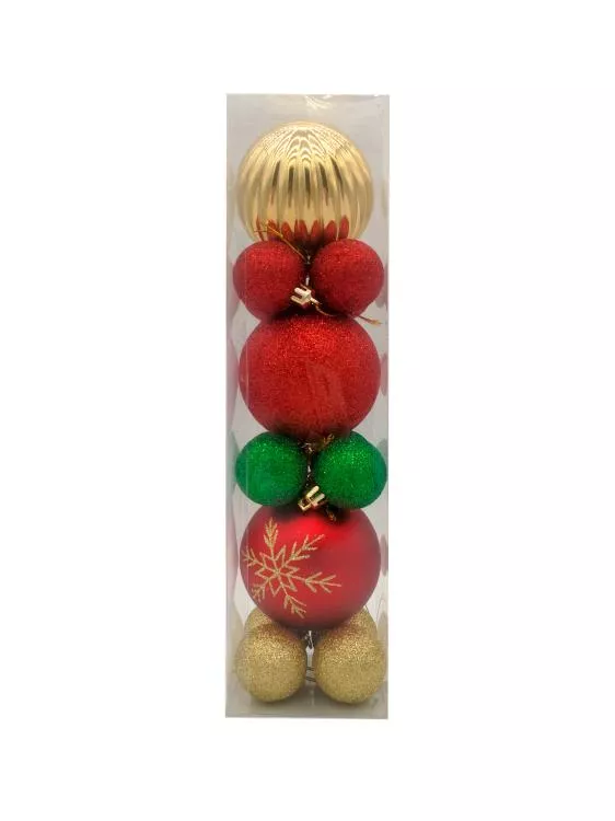 Новогодние елочные игрушки в форме шаров разного диаметра разнообразят декор новогодней елки и станут необычным дополнением к другим игрушкам. Шары представлены в наборах по 15 штук. Выполнены в классических новогодних оттенках: красном, золотом и зеленом...