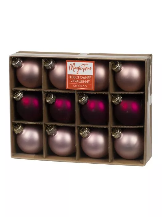 Набор шаров новогодних "Розовые оттенки" 12шт, 4см