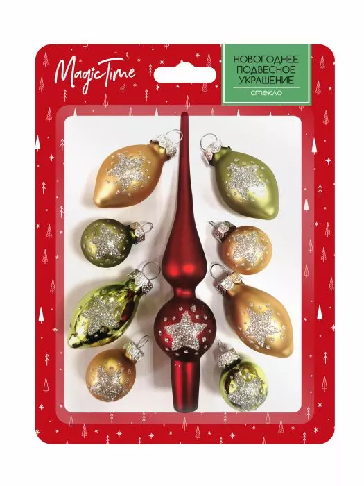 Набор шаров новогодних с верхушкой 9шт, 12х3см, 5х25см