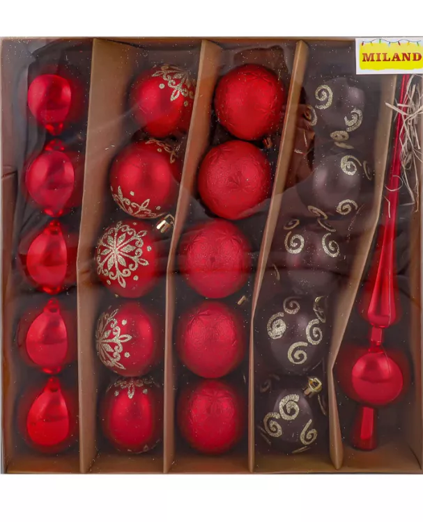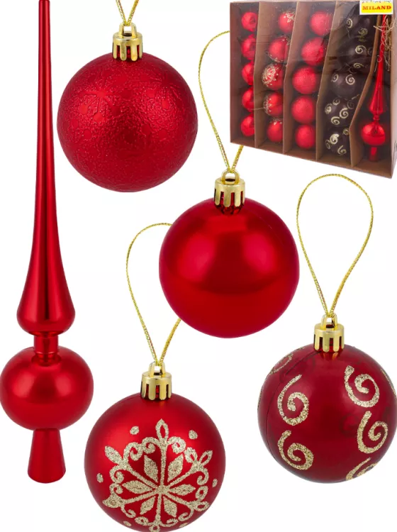 Набор шаров новогодних с верхушкой "Блеск красного" 21шт