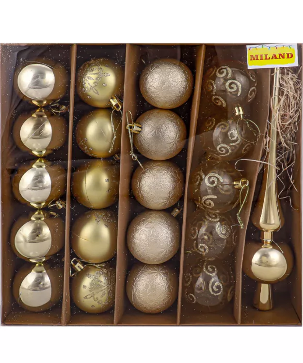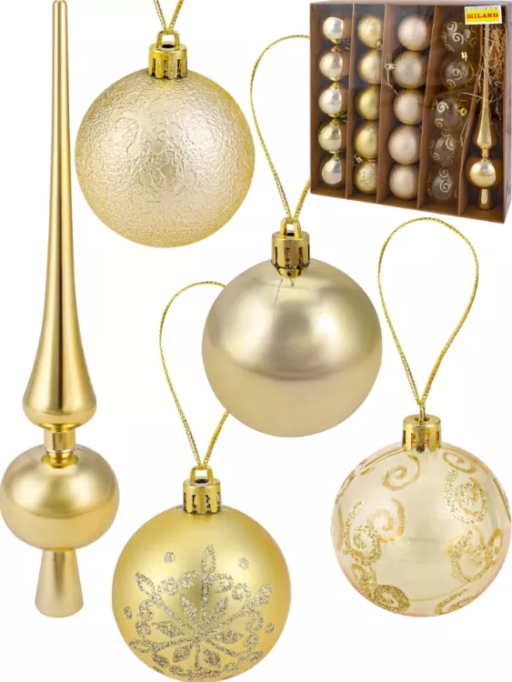 Набор шаров новогодних с верхушкой "Блеск золота" 21шт