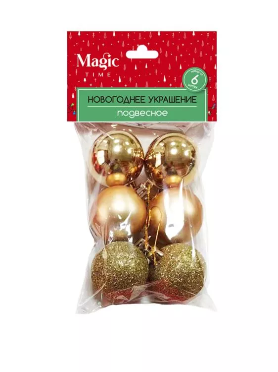 Набор шаров новогодних "Золотой блеск" 6шт, 5см