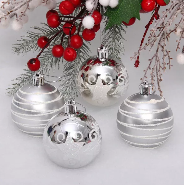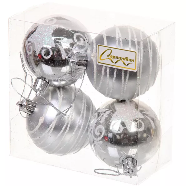 Набор шаров "Снежная дымка" 4шт, 6см, цв.серебро