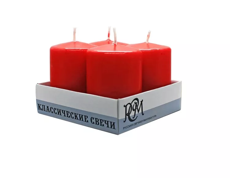 Набор свечей 4шт, 6х4см цв.красный