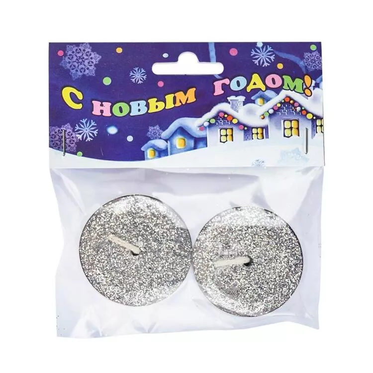 Набор свечей-таблеток "Праздничный" (2 шт.) серебро