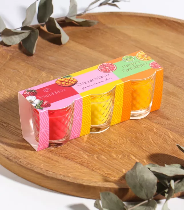Набор свечей в стекле "Земляника.Манго.Цитрус" 50мл 3шт.