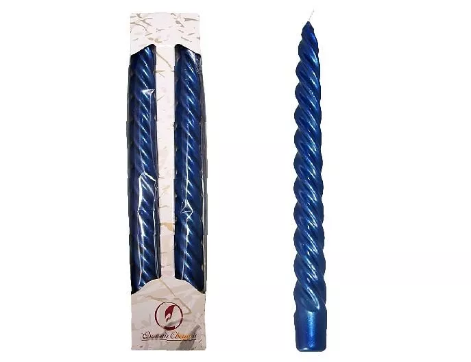 Набор свечей витых 2шт, цв.синий металлик
