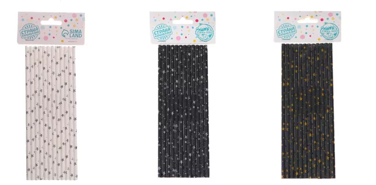 Набор трубочек "Звезды" 20см 12шт, 3цв.