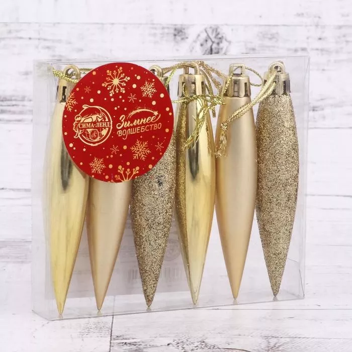 Набор украшений елочных "Сосулька" 6шт 8см, цв.золото