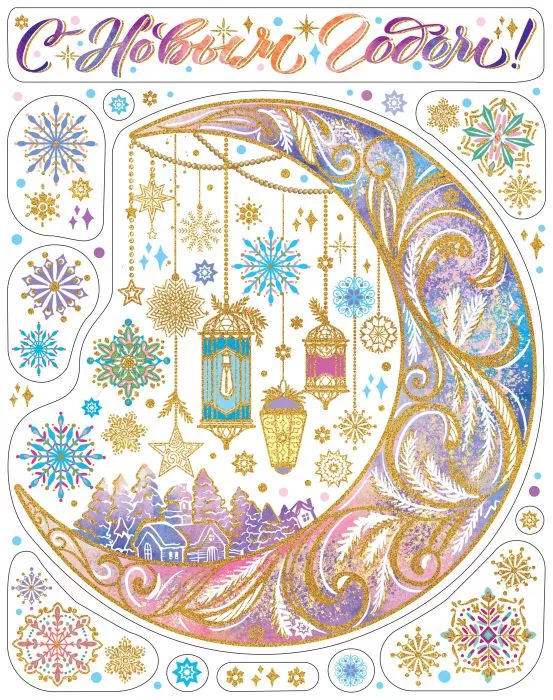 Наклейка для интер."Месяц со снежинками" 30х38см