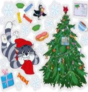 Наклейка для интер."Простоквашино.Новогодний котик" с раскраской 30х40см