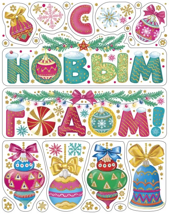 Наклейка для интер."Разноцветные елочные игрушки" 30х38см