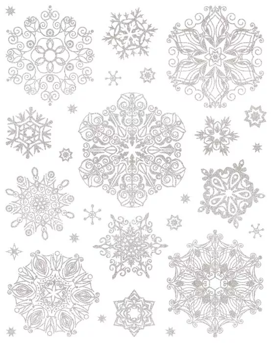 Наклейка для интер."Серебряные хлопья снега" 30х38см