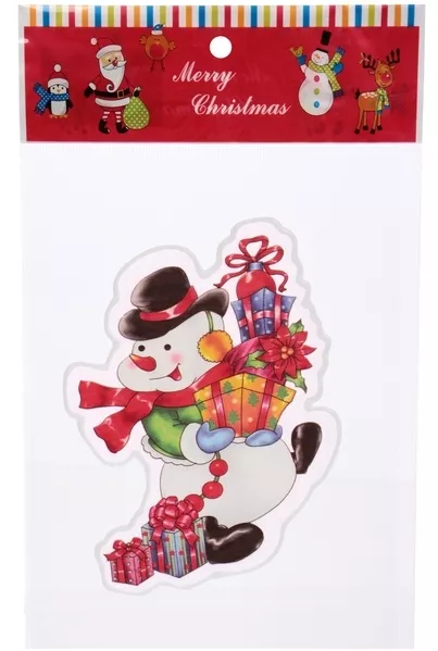 Наклейка для интер."Снеговик с подарками" 15х20см