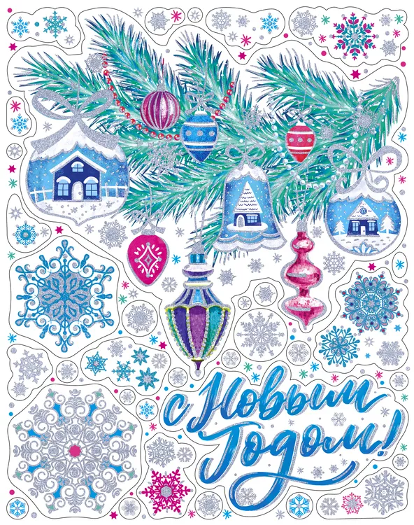 Наклейка для интер."Веточка с игрушками" 30х38см