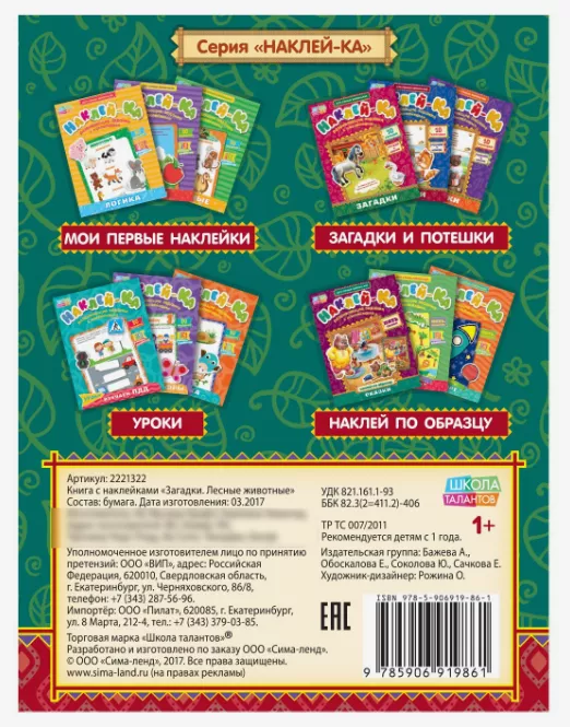 Наклейки обучающие "Загадки.Медведь", 12стр.