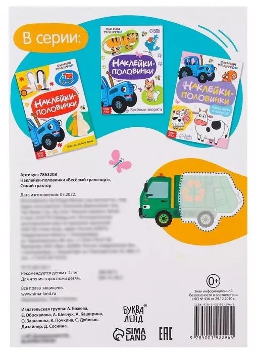 Наклейки-половинки "Синий трактор.Весёлый транспорт" 12стр.