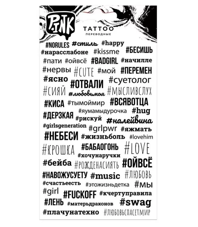 Наклейки-тату переводные "Хэштеги" 11х22см