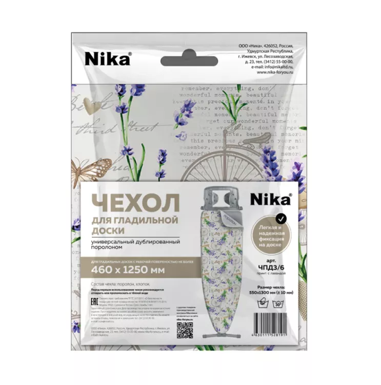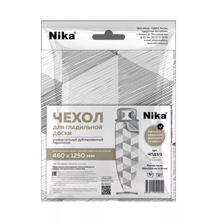 "НИКА" Чехол для гладильной доски антипригарный с поролоном 130х55см, в ассорт.