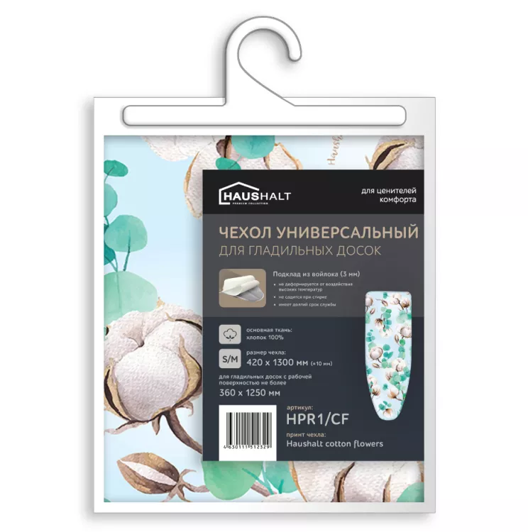"НИКА" Чехол для гладильной доски "Haushalt cotton flower" антипригарный с поролоном 130х42см