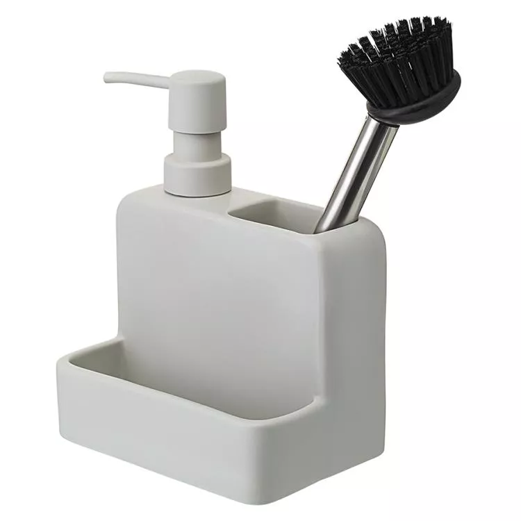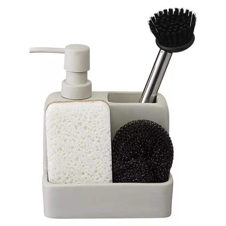 "Noble" Органайзер для раковины (диспенсер + щетка) 280мл цв. светло-серый