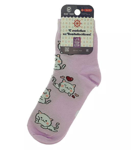 Носки "Белый котенок" цв.сиреневый, размер 38-40
