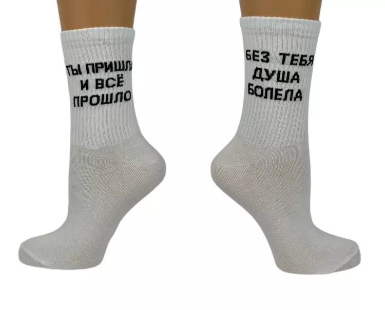 Носки "Без тебя душа болела/Ты пришла и все прошло" цв.белый, размер 41-43