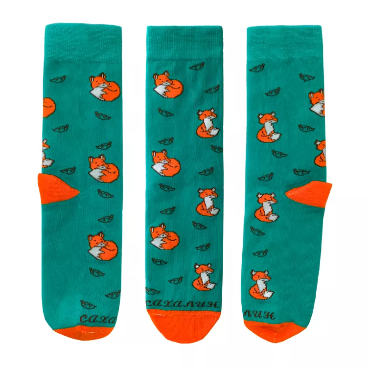 Носки "Сахалин. Лисички" цв.зеленый, размер 38-40
