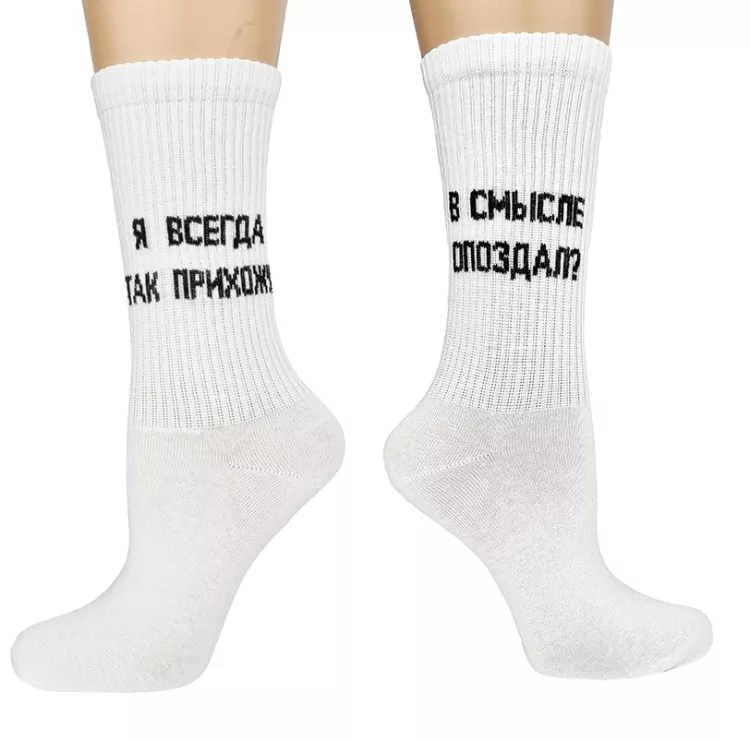 Носки "В смысле опоздал?/Я всегда так прихожу" цв.белый, размер 43-45