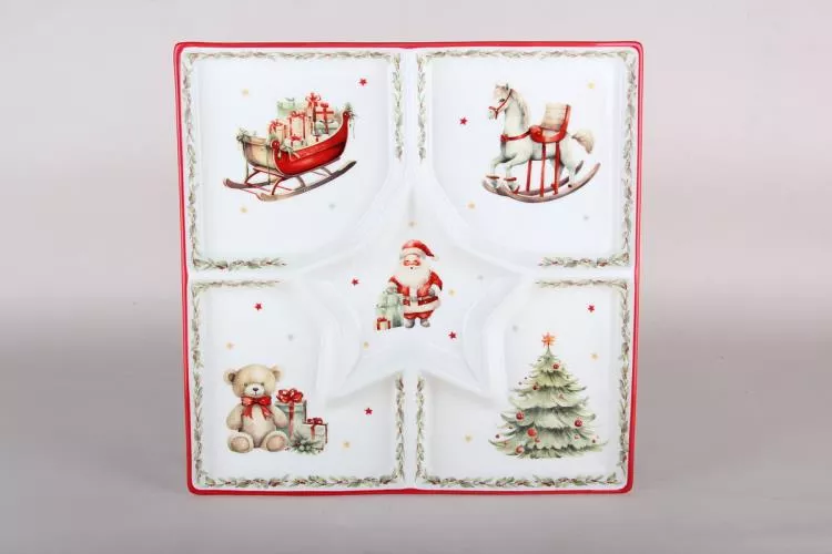 "Новогоднее настроение" Менажница квадратная 5-секционная 30см