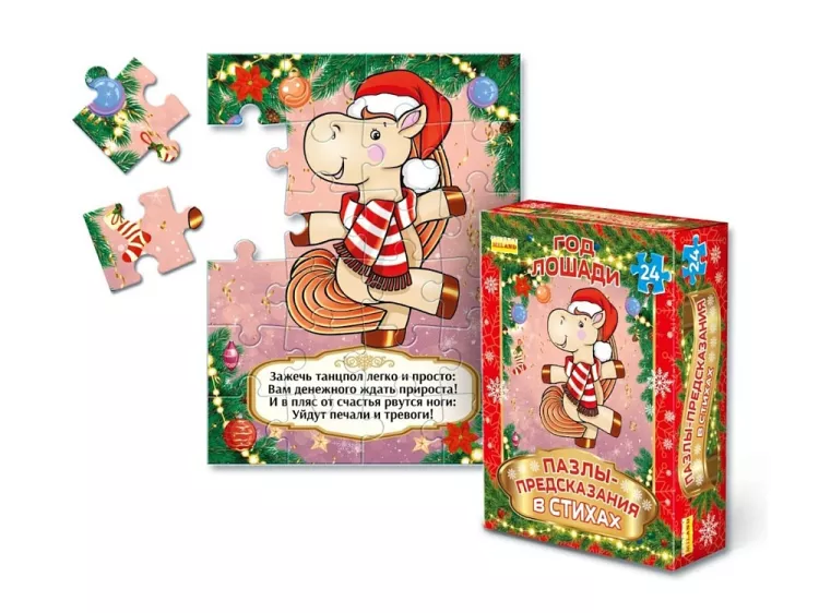 Магнит "Новогодняя лошадь. Удачи в дом" 9,5х6,5см