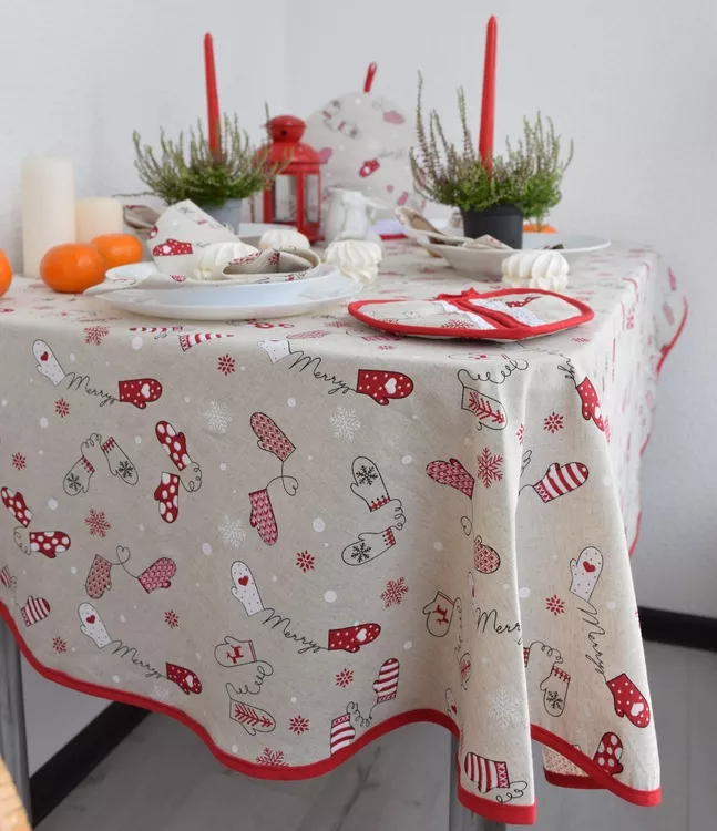 "Новогодние рукавички" Скатерть d-145см