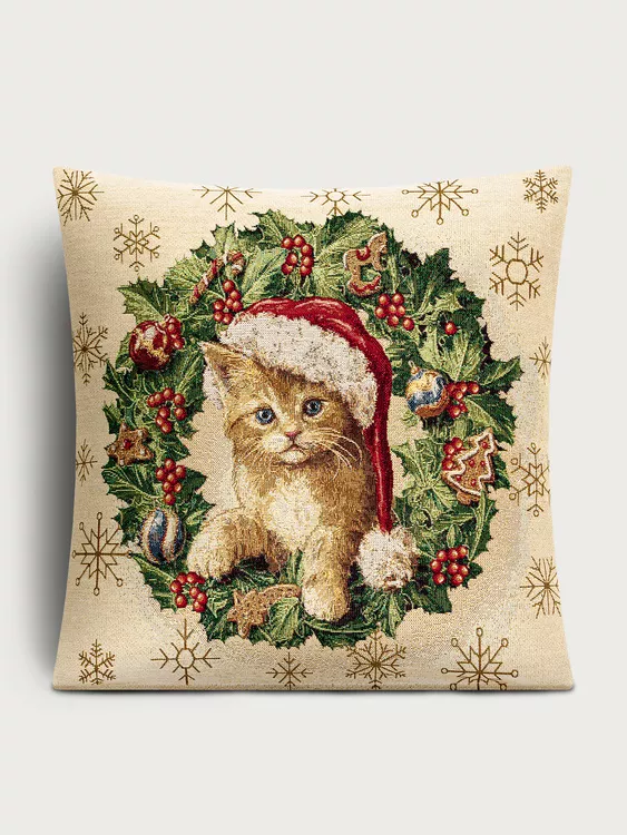 "Новогодний венок Котенок" Наволочка декоративная 45х45см