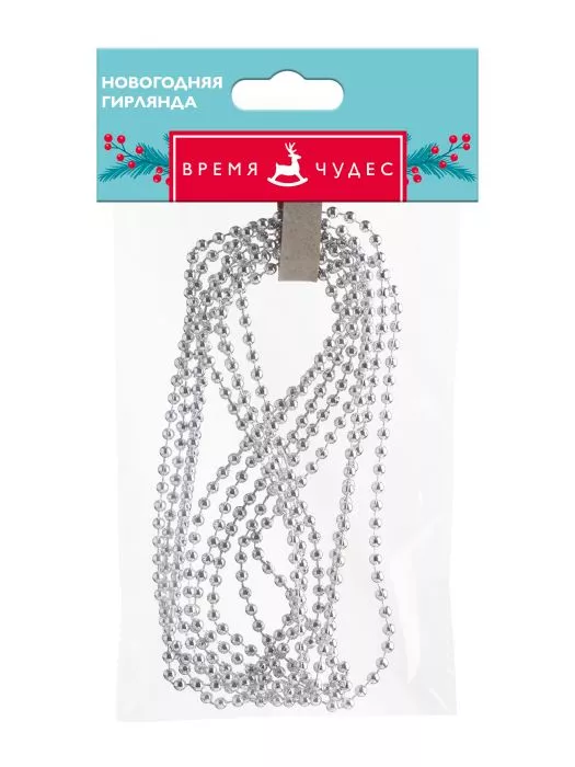 Новогодняя гирлянда "Бусы" цв.серебро 2,7м