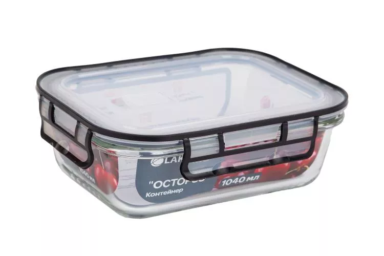 Стеклянный контейнер для еды — идеальный выбор для хранения и перекусов, будь то дома, в офисе или в дороге. Он оснащен плотной крышкой с гибкими защелками софт-тач и силиконовой уплотнительной резиночкой, что гарантирует герметичность и сохранность проду...