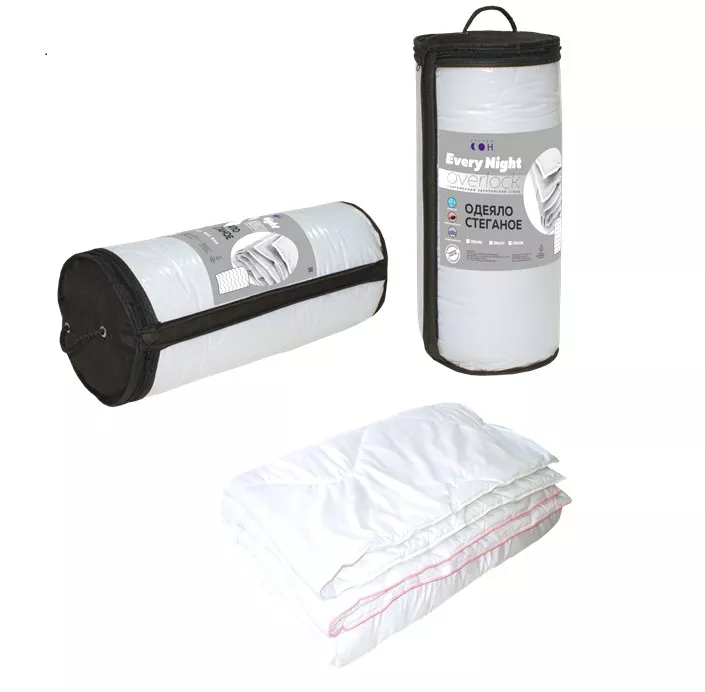 Наполнитель - полиэфирное волокно "Холлофилл", плотность 200 г/м2. Окантовка одеяла - оверлок.