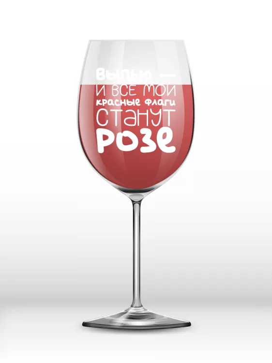 "Oh vine!" Бокал для вина "Выпью-и все мои красные флаги станут Розе" 400мл в п.у.