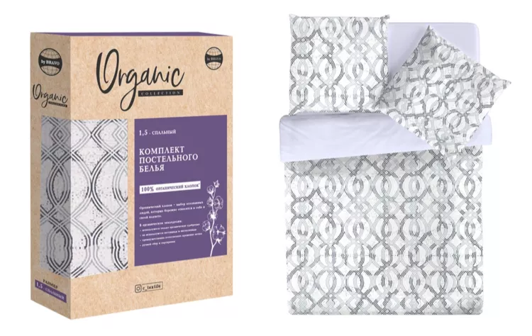 "ORGANIC" Комплект постельного белья "Винсент" 1,5сп, 70х70см, перкаль