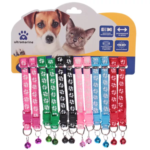 Ошейник с колокольчиком "Zoo City-Лапки" 19х32х1см, в асс.