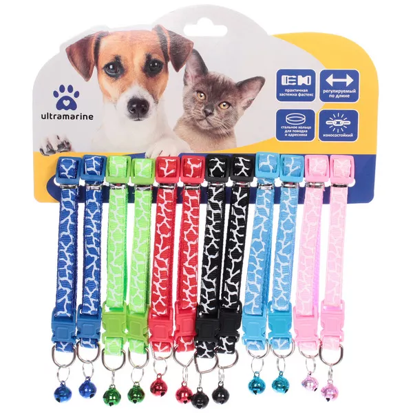 Ошейник с колокольчиком "Zoo City-Саванна" 19х32х1см, в асс. ДИСПЛЕЙ 12