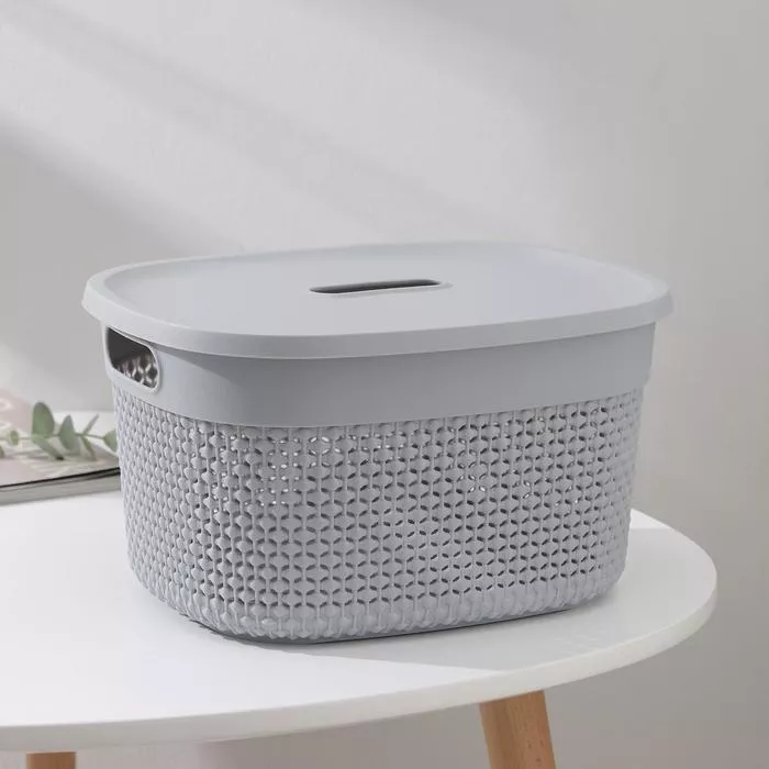 "OSLO"Gray storm" Корзина для хранения с крышкой 6л, 27,4х22,9х15,3см, цв.серый шторм