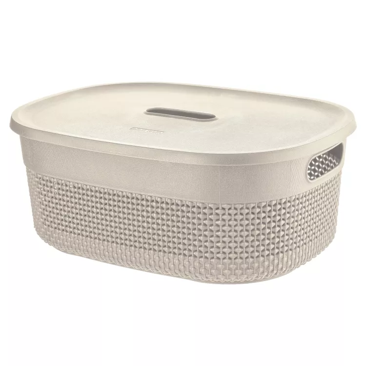 "OSLO"Milk" Корзина для хранения с крышкой 12л, 38,8х29,2х15,2см, цв.молочный