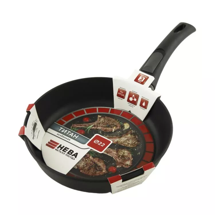 Сковорода "Титан" из серии Особеннная объединила в себе все лучшие качества посуды для кухни. Универсальная классическая сковорода с высокими бортами и широким дном станет идеальным выбором.