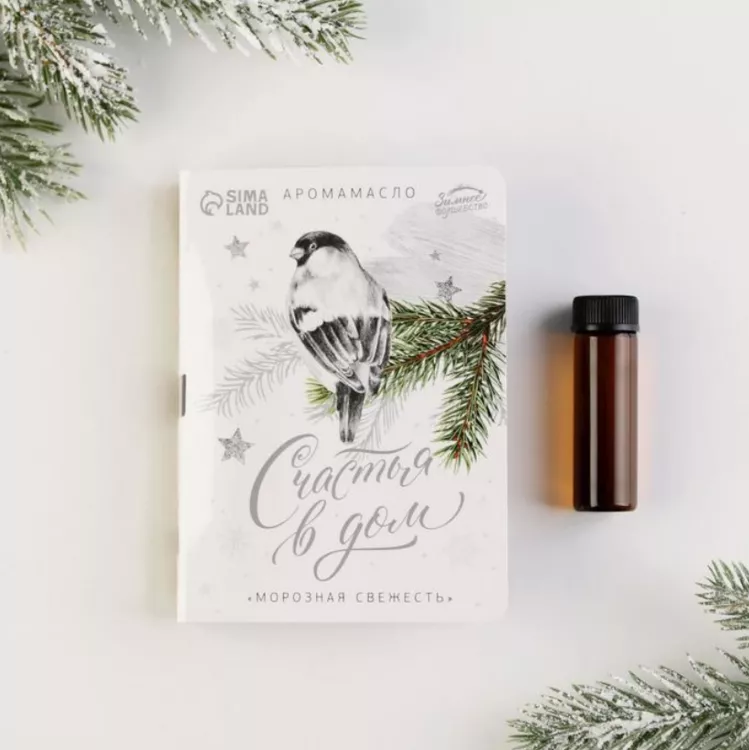 Открытка с аромамаслом "Счастья в дом", морозная свежесть, 5мл