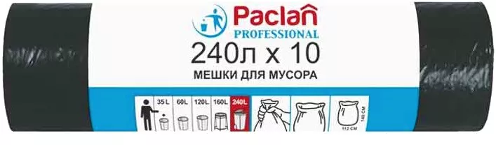 PACLAN Мешки для мусора "Professional" ПВД 240л, 10шт. 35мкм
