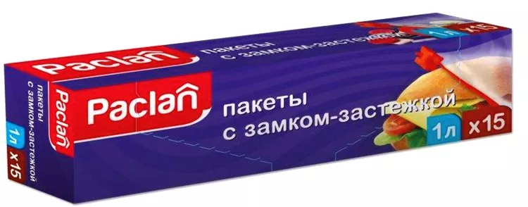 PACLAN Многофункциональные пакеты с застежкой zip-lock 1л, 15шт. 22х18см,